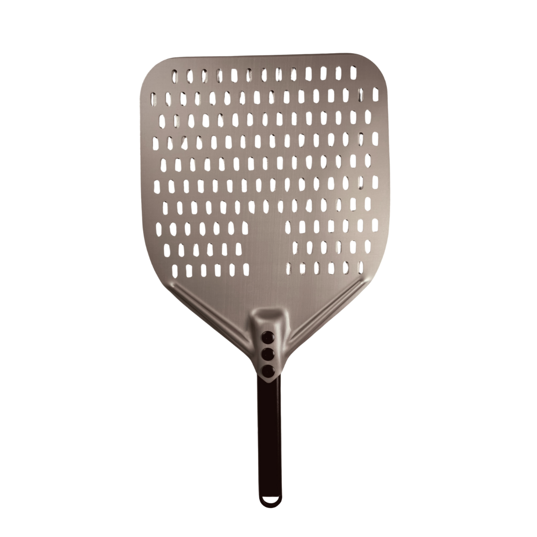Stabil és könnyű pizzalapát perforált fejjel, amely megkönnyíti a pizza vetését és kivételét. A perforáció csökkenti a súlyt és segíti a felesleges liszt eltávolítását, így a tészta alja ropogós marad. A rövid, ergonomikus nyél kiválóan irányítható otthoni pizzakemencékben is.