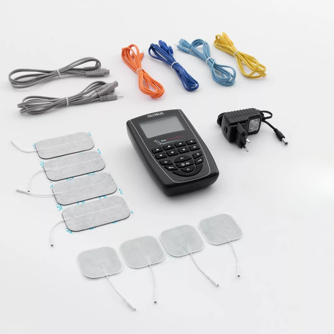 Prémium elektroterápiás eszköz fájdalomcsillapításra, izomstimulációra és mikroáramú kezelésekre – otthoni vagy sportrehabilitációs használatra.